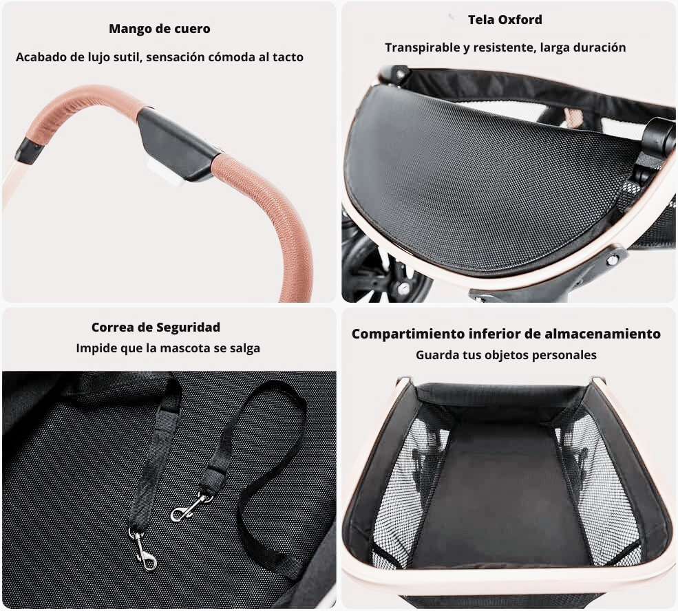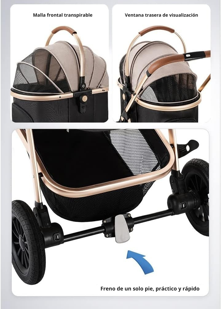 ¡Tres productos en uno! Este innovador cochecito multifuncional se transforma en lo que necesites: cochecito de paseo, transportador de viaje y asiento para automóvil. Perfecto para dueños que buscan versatilidad, comodidad y la máxima seguridad para sus mascotas.