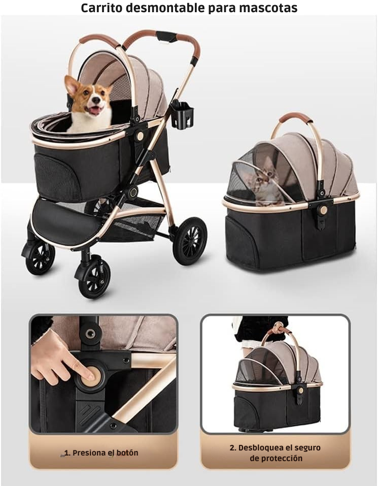 CARRIOLA DE LUJO 3 EN 1 PARA MASCOTAS